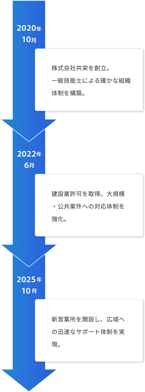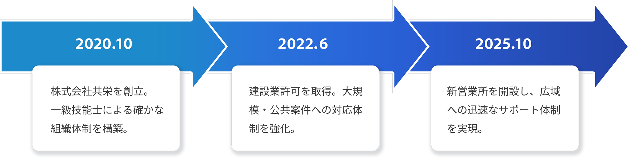 私たち共栄は、技術と誠実さ、そして“三方良し”の精神を礎に、